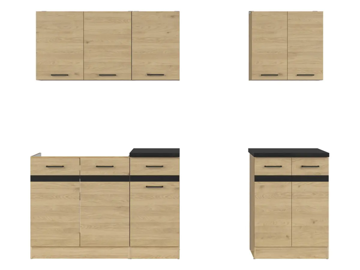 Conjunto de cocina Junona Line A 180 cm roble bernstein con encimera