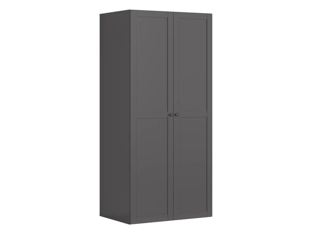 El grafito profundo es uno de esos tonos que nunca pasan de moda. El armario Flex combina un cuerpo oscuro y elegante con frentes de diseño enmarcado y discretos tiradores negros; un conjunto que encaja con facilidad en interiores de estilo escandinavo, loft, vintage o moderno. El interior en color gris lino añade un toque cálido y sofisticado.