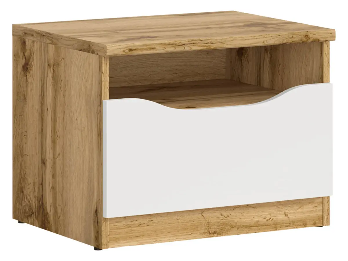 Mesita de noche Nuis 50 cm con cajón roble wotan/blanco brillo