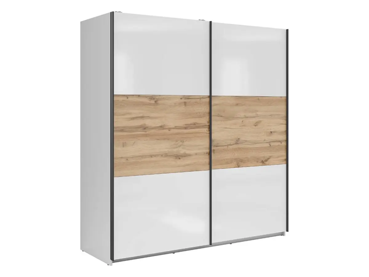 Armario de puertas correderas Tetrix 183 cm blanco brillo/roble wotan