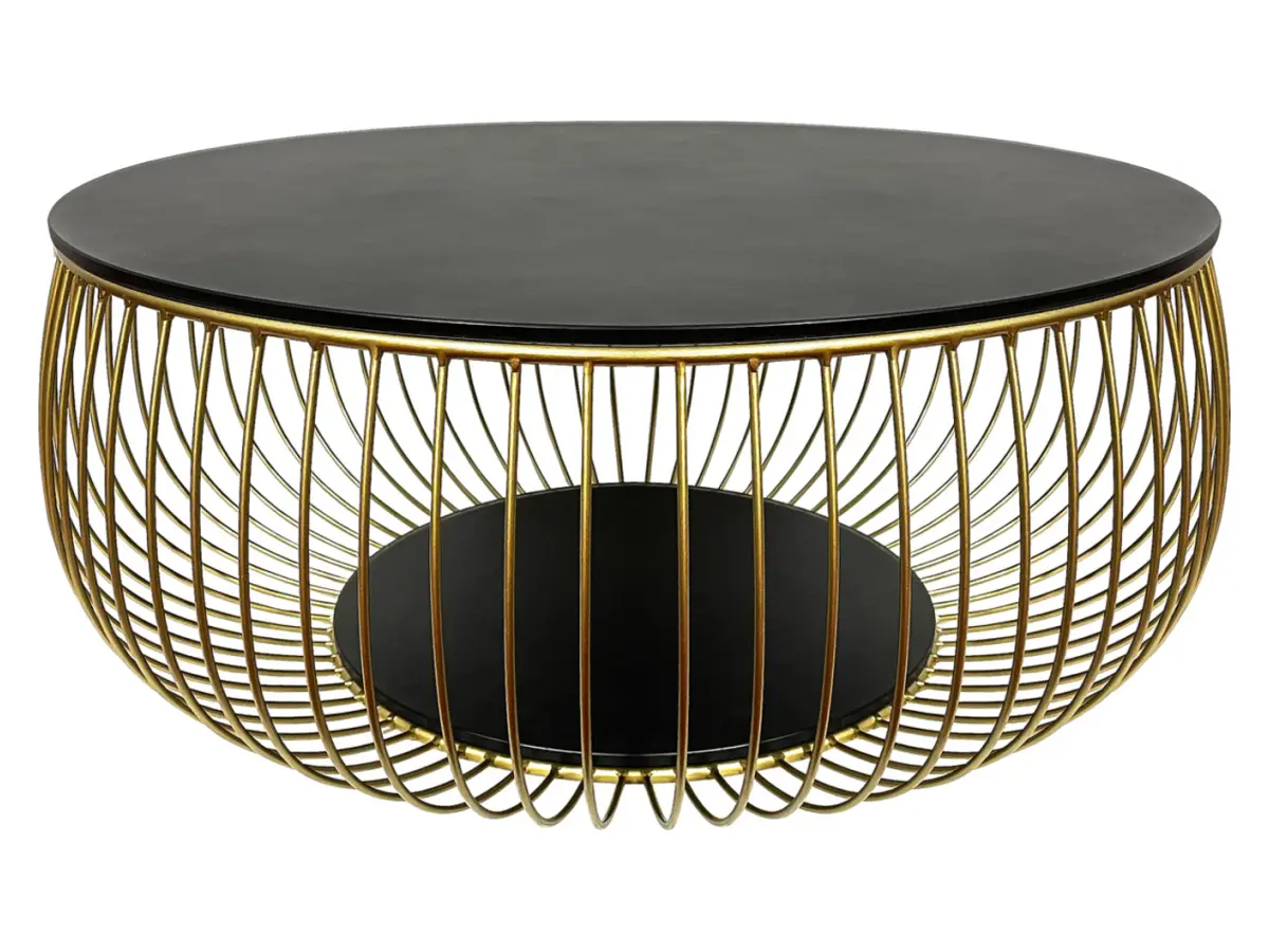 Mesa redonda de cristal Bowl negro-dorado