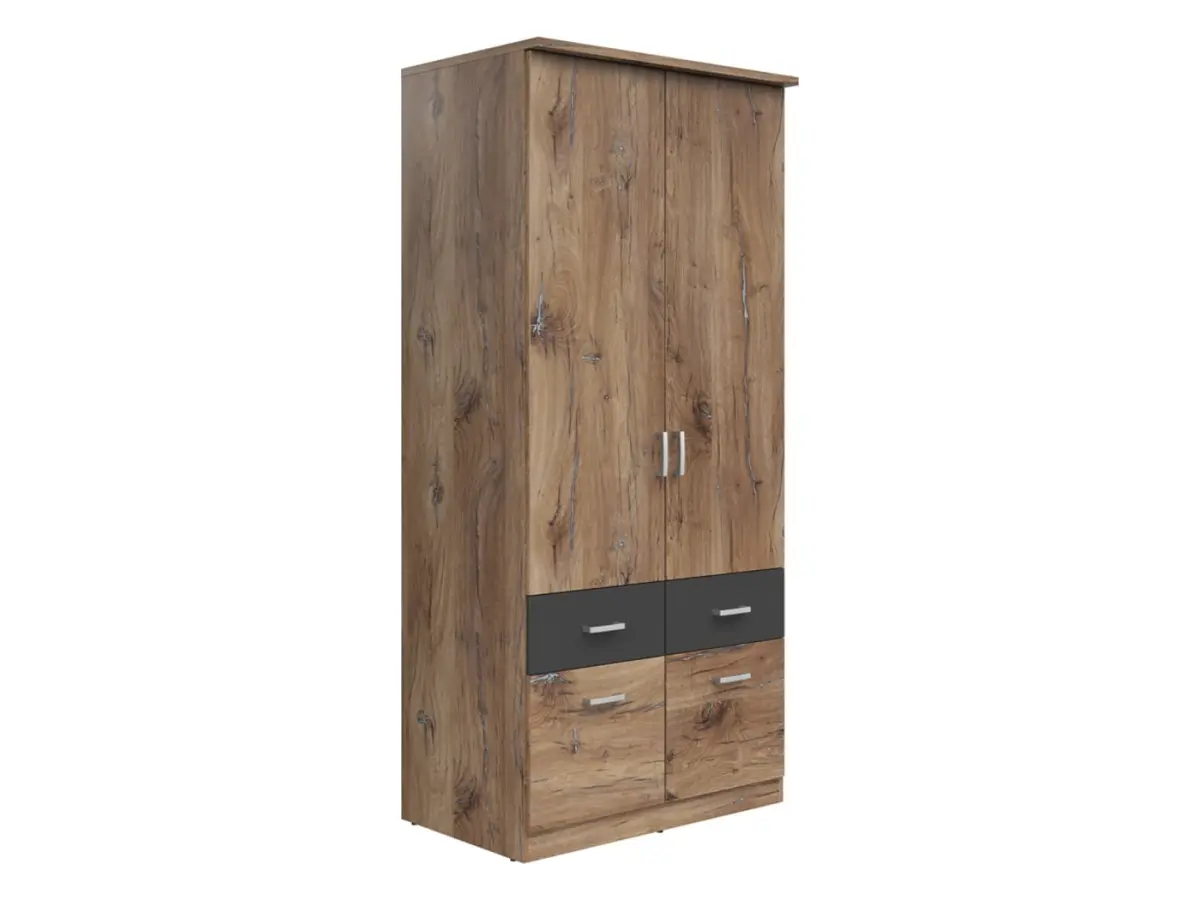 Armario de dos puertas Brando-2 91 cm con cajones roble flagstaff oscuro