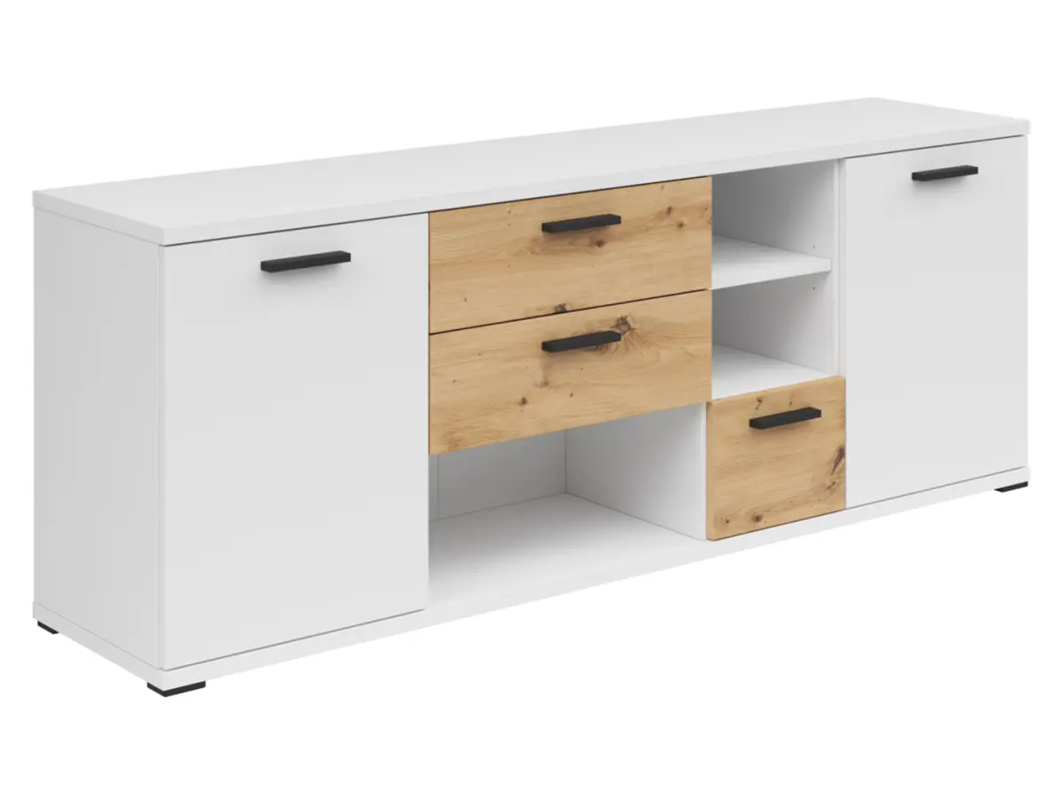 Cómoda Homeland 155 cm con 2 puertas y 3 cajones blanco/roble artisan