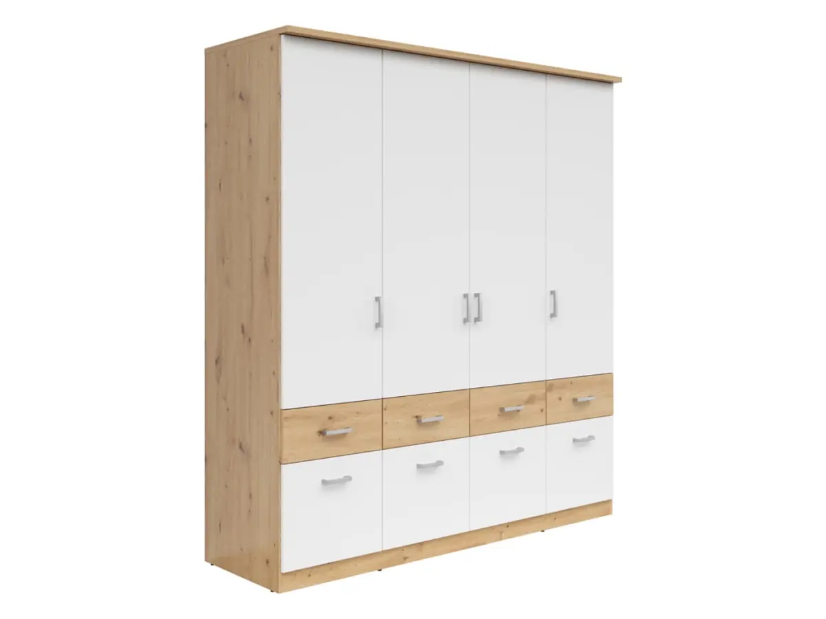 Armario de cuatro puertas Brando-4 181 cm con cajones roble artisan/blanco
