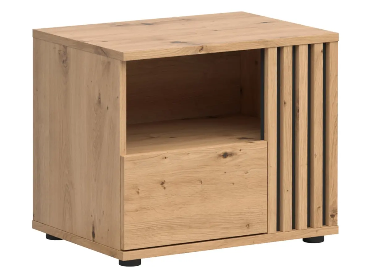 Mesita de noche Vabres 55 cm derecha con cajón roble artisan listones