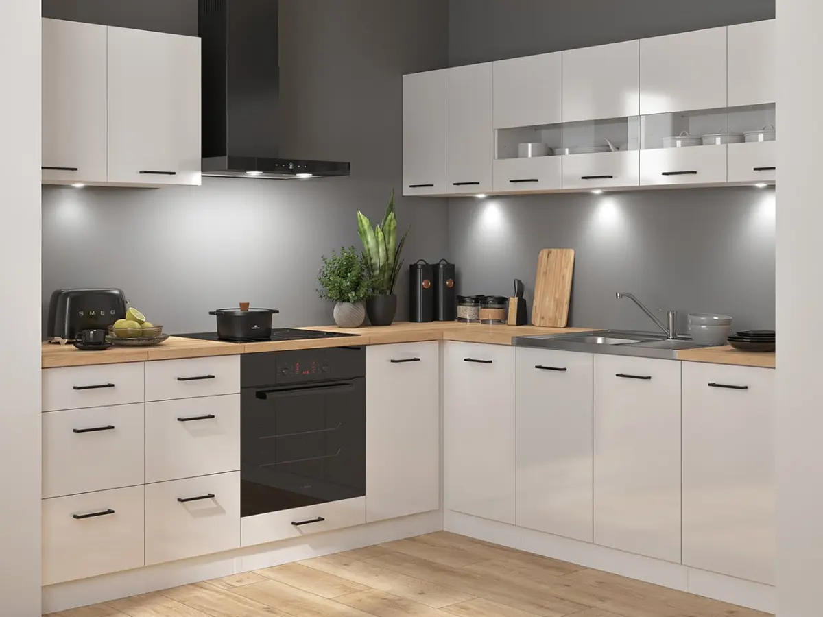 Conjunto de cocina de esquina Junona Line 220x240 brillo tiza con encimera