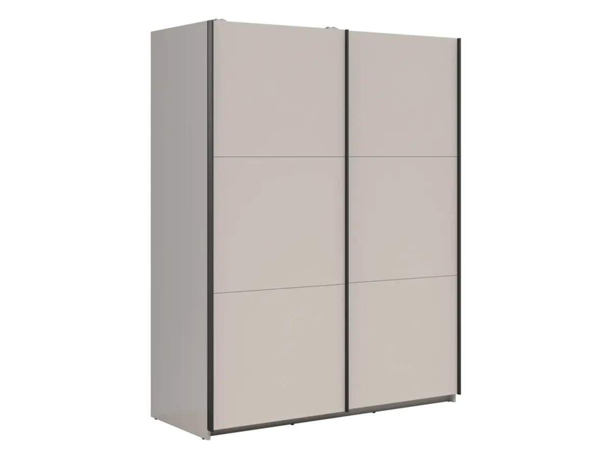 El armario Tetrix tiene un carácter moderno y líneas limpias que encajan perfectamente en el dormitorio actual. Su interior en tono gris lino aporta calidez y elegancia. Está disponible en otros colores y con la opción de puertas de espejo para ampliar visualmente el espacio.