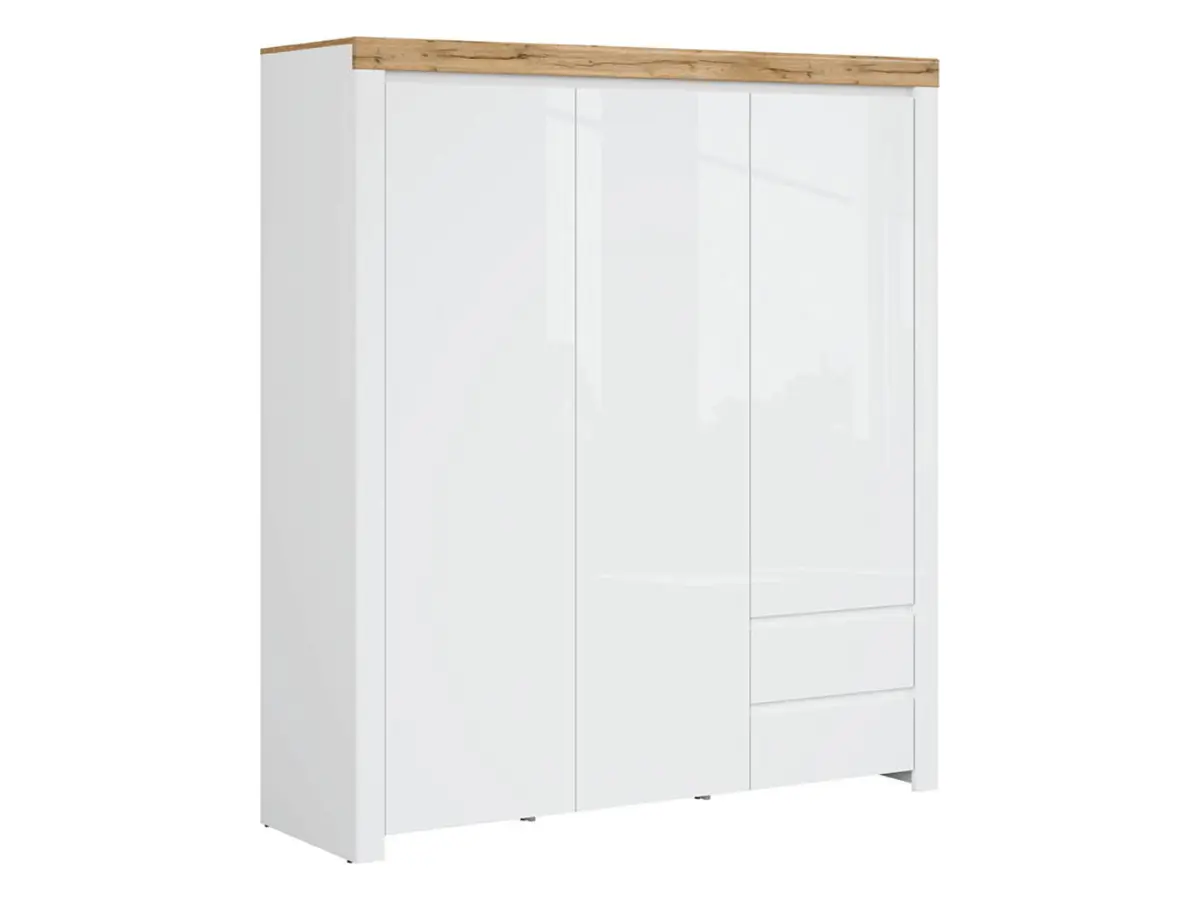 Armario de tres puertas Holten 180 cm con cajones blanco brillo/roble wotan
