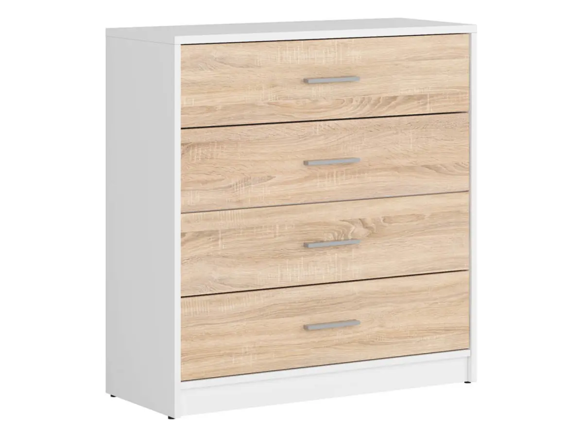 Líneas limpias, frentes lisos y tiradores horizontales que rompen la monotonía con un toque contemporáneo. Disponible en varios colores de tendencia para que combines la cómoda con el resto de la habitación exactamente como imaginas.