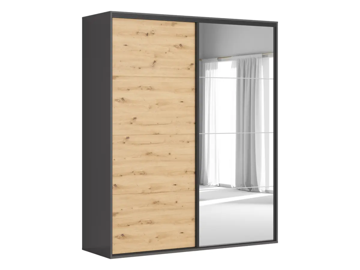Armario de puertas correderas Flex 200 cm con espejo grafito/roble artisan