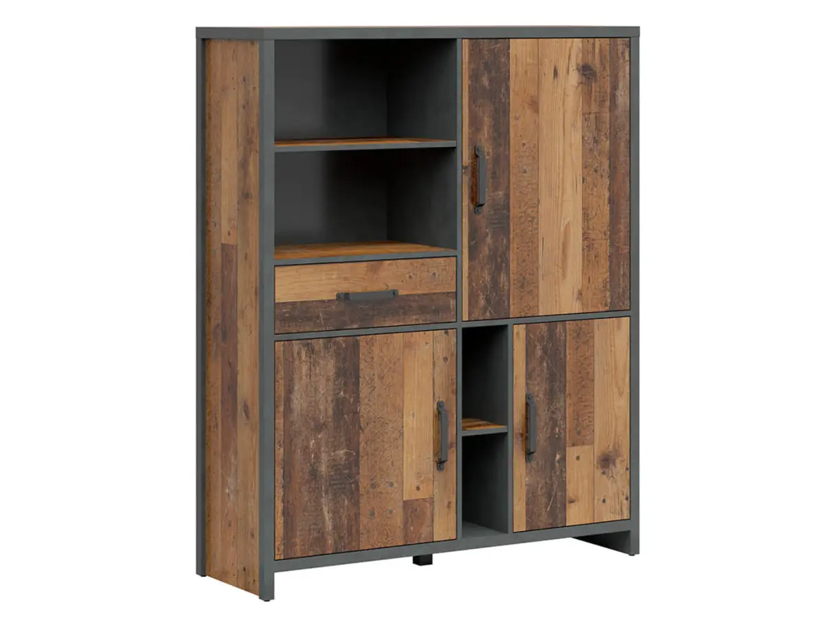 Estantería Weston 120 cm con 3 puertas, cajón y 4 estantes pino old style