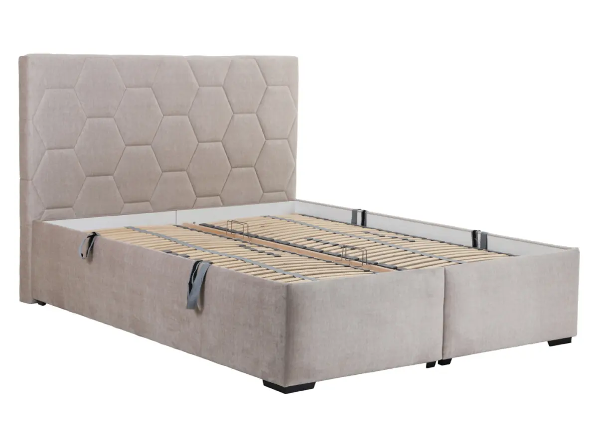 Cama tapizada Bora 160x200 con contenedores y somieres taupe