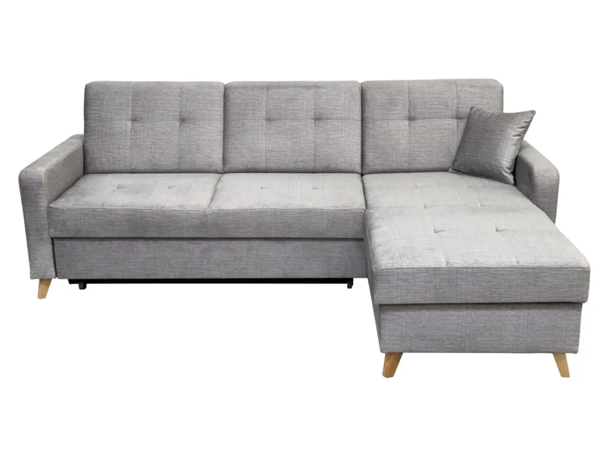 Sofá rinconera universal Lars convertible con arcón de terciopelo gris