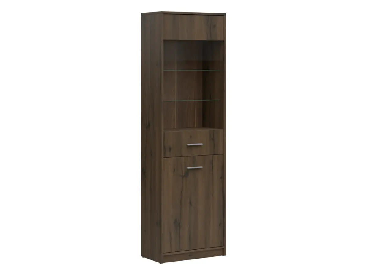 La vitrina Nepo Plus combina una silueta clásica con un acabado en roble noble que aporta calidez y un toque moderno a cualquier estancia. Su paleta de colores sobria facilita la integración con el mobiliario existente, ya sea en el salón, en una habitación juvenil o en el dormitorio.