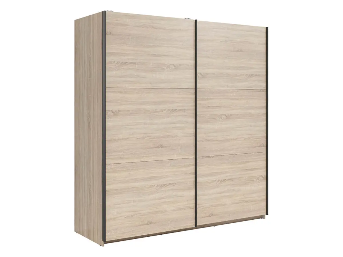 El armario Tetrix 183 tiene un diseño moderno con puertas correderas que ahorran espacio y dan un acabado limpio y contemporáneo. El interior en tono gris lino aporta una base neutra y elegante. También está disponible en otros colores y con frentes con espejo.