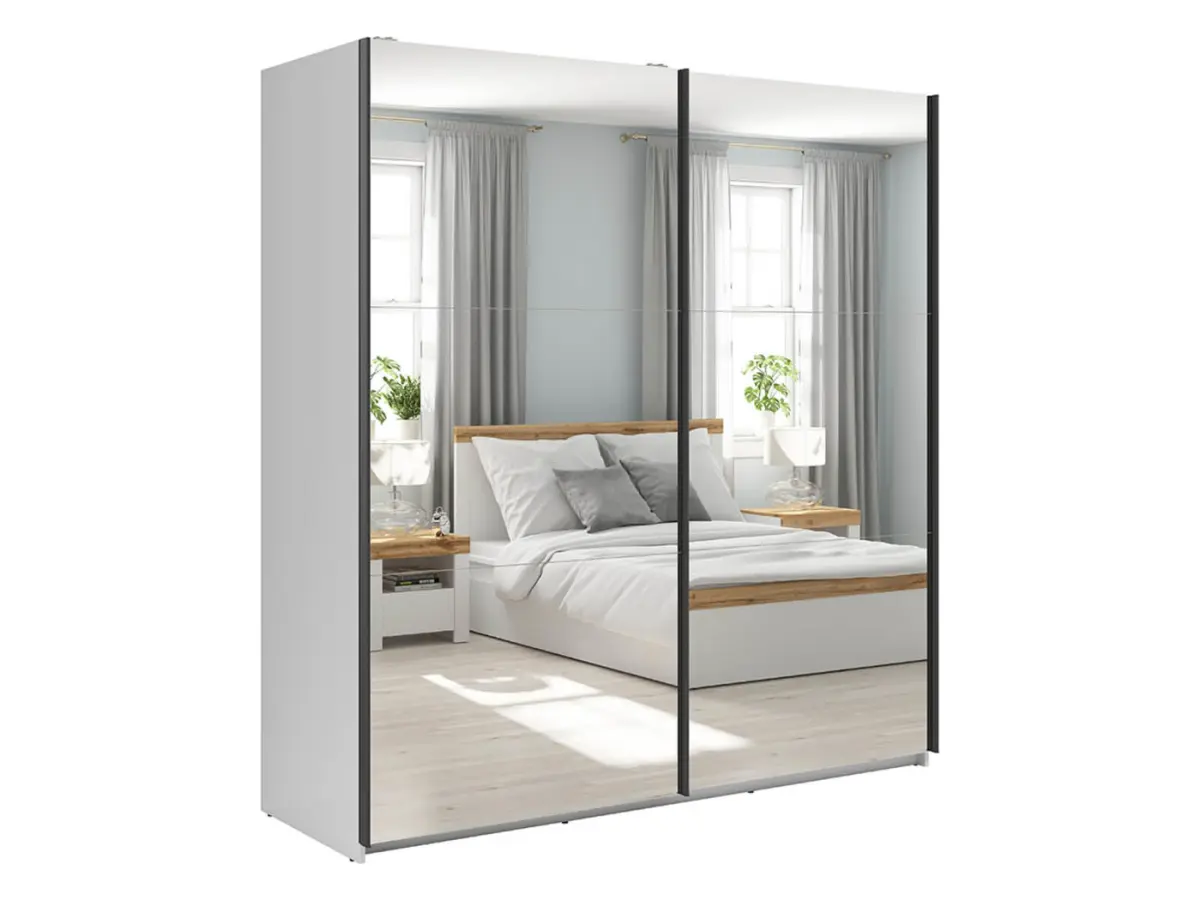 Armario de puertas correderas Tetrix 183 cm con espejo blanco brillo