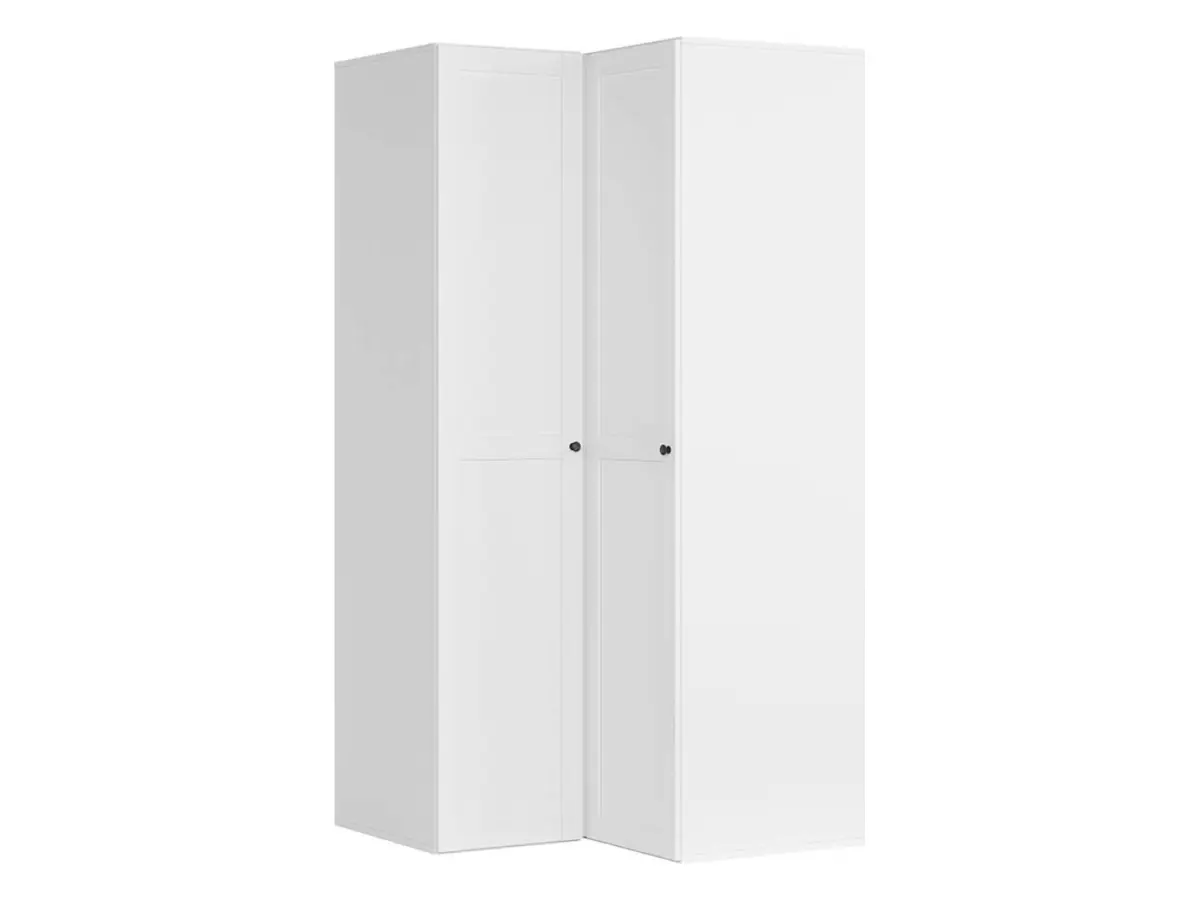 Dos módulos que se unen en forma de L para aprovechar al máximo el rincón de la estancia. En su interior encontrarás espacio para colgar camisas, chaquetas y pantalones, así como una zona superior para bolsos, mochilas o maletas de mano. Todo en su sitio, sin esfuerzo.