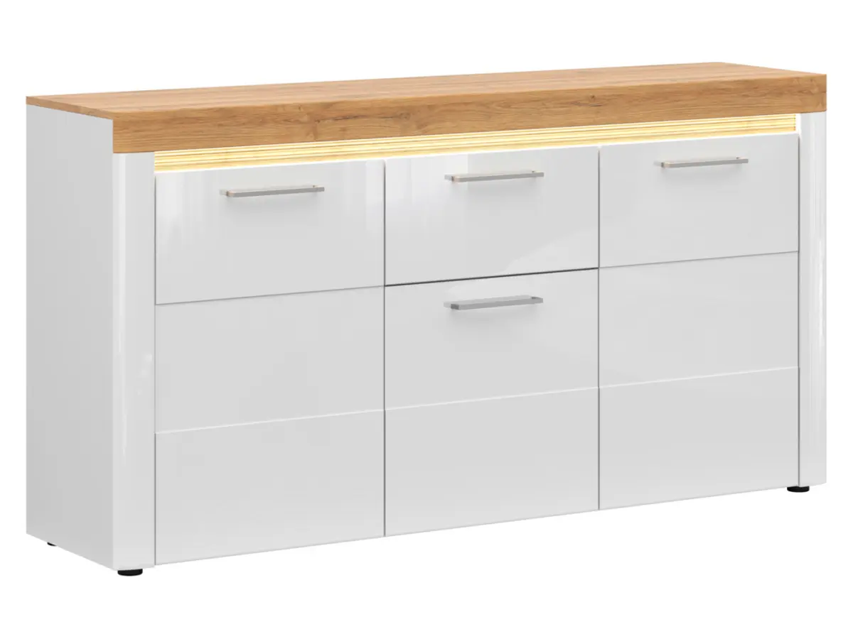 Cómoda Horton 170 cm con 3 puertas y un cajón roble dorado grandson/blanco brillo
