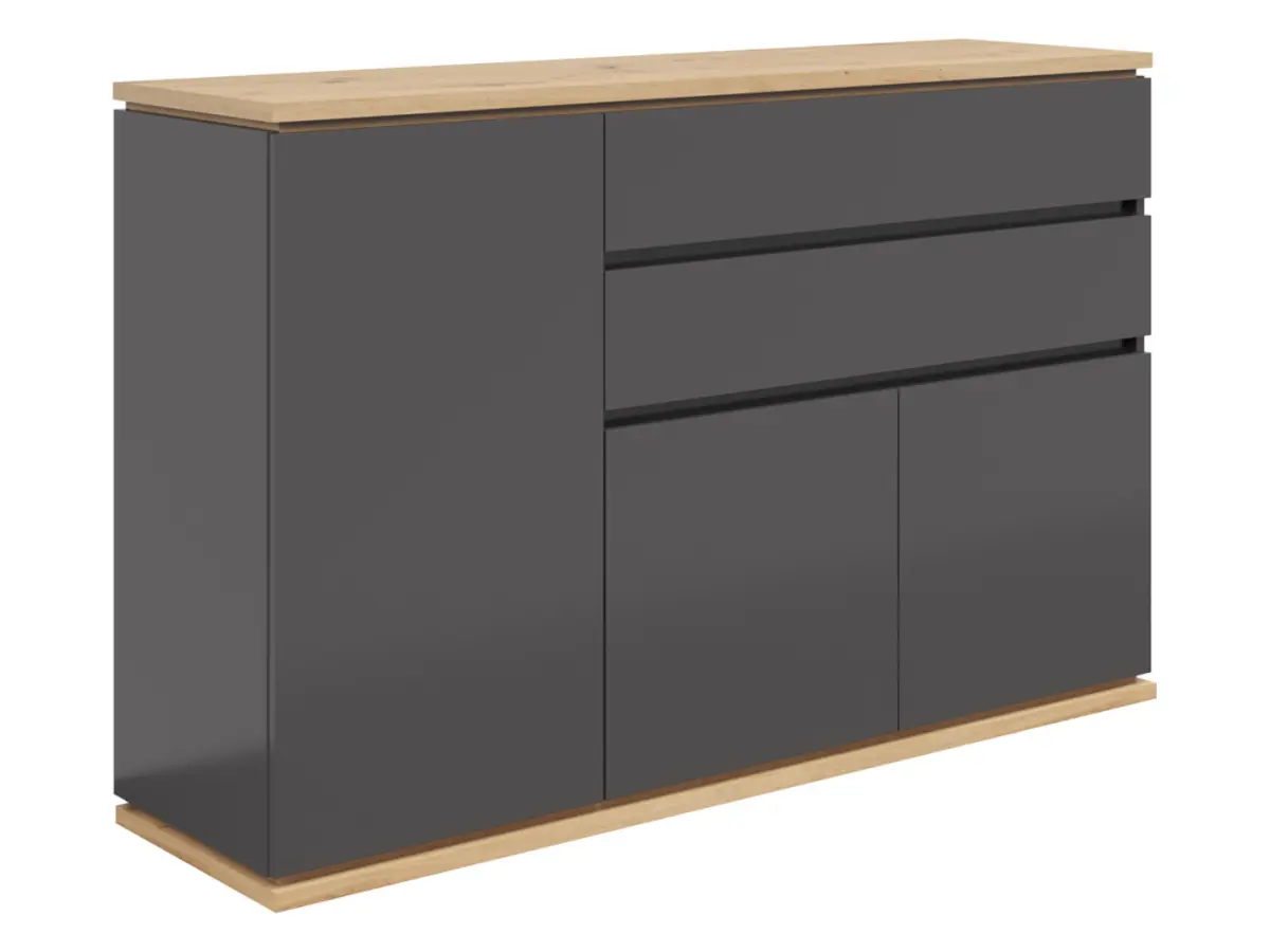 Dos amplios cajones y tres puertas que ocultan estantes de gran profundidad ofrecen espacio de sobra para ropa, documentos y todo lo que necesites tener a mano, pero fuera de la vista. El sistema de apertura push en las puertas mantiene la línea limpia y sin interrupciones.