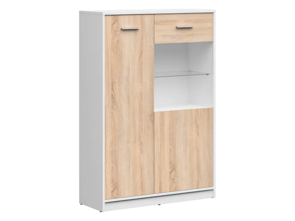 Vitrina Nepo Plus 90 cm con 2 puertas blanco/roble sonoma