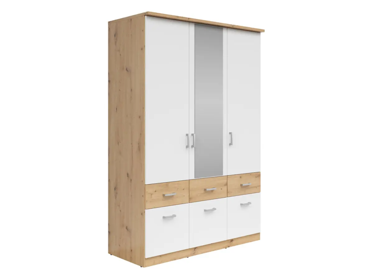 Armario de tres puertas Brando-3 136 cm con espejo y cajones roble artisan/blanco