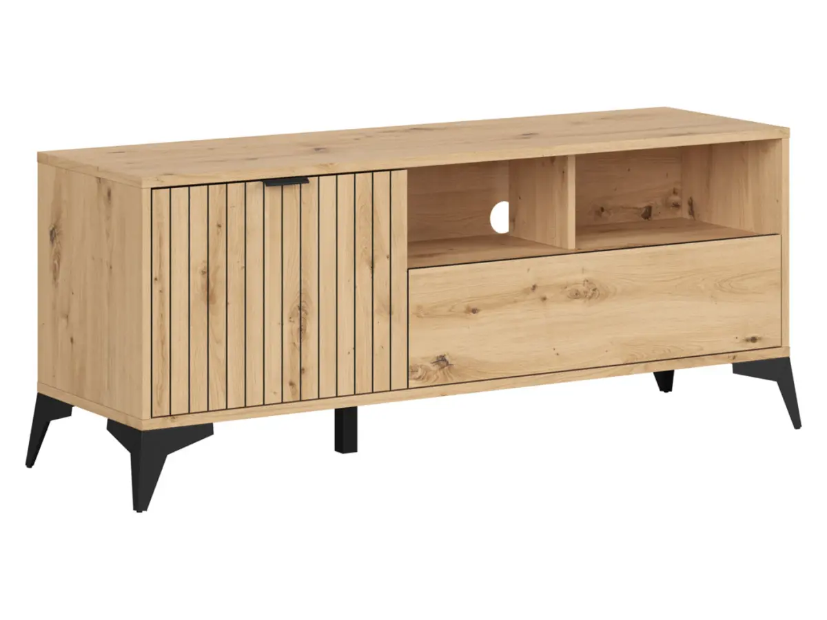 Mueble RTV Lamea 135 cm con puertas, cajón y estante roble artisan