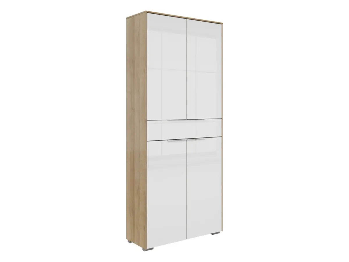 Con 4 puertas y un cajón amplio, la estantería Nevada ofrece espacio para documentos, accesorios de oficina y objetos personales. Sus baldas interiores permiten organizar cada centímetro según tus necesidades.
