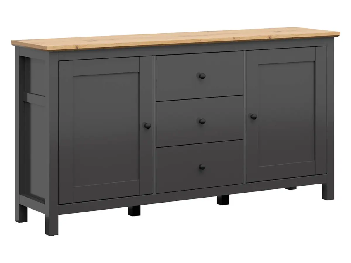 Cómoda Hesen 186 cm con 2 puertas y 3 cajones grafito/roble artisan