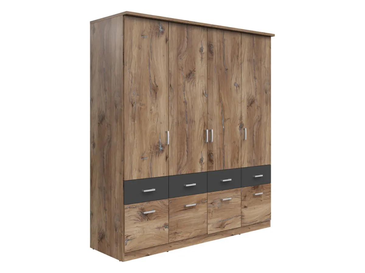 Armario de cuatro puertas Brando-4 181 cm con cajones roble flagstaff oscuro
