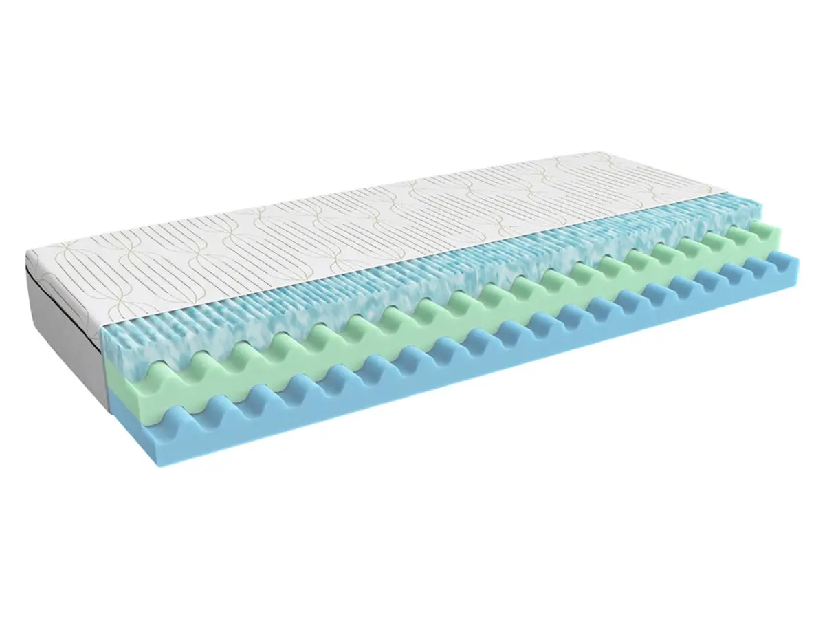El colchón Mitis está dividido en 7 zonas de confort que adaptan el soporte exactamente donde lo necesitas: cabeza, hombros, columna, caderas y piernas. Su espuma poliuretánica perfilada de 22 cm de altura se moldea al cuerpo con gran elasticidad, ofreciendo además un suave efecto masaje mientras duermes.