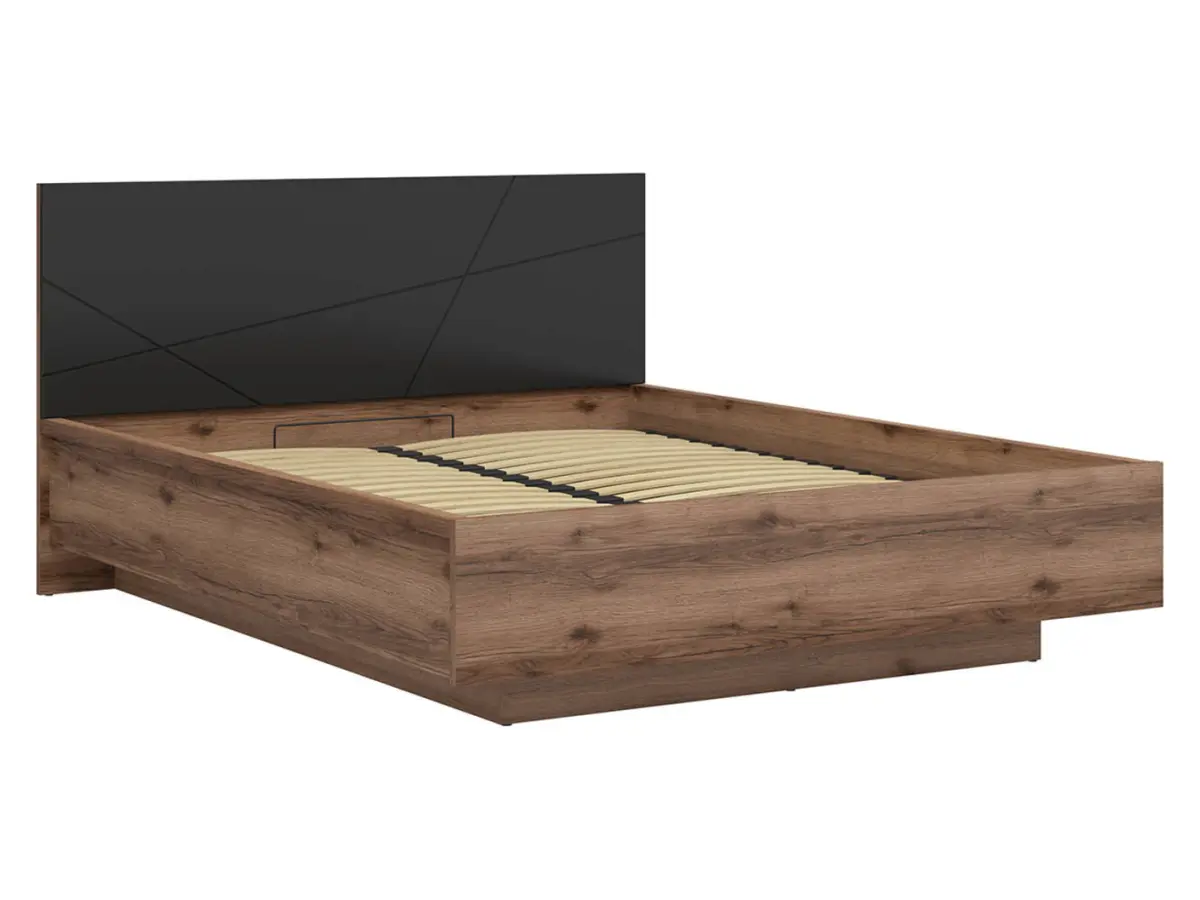 Cama Forn 160x200 con somier y contenedor roble delano oscuro/negro
