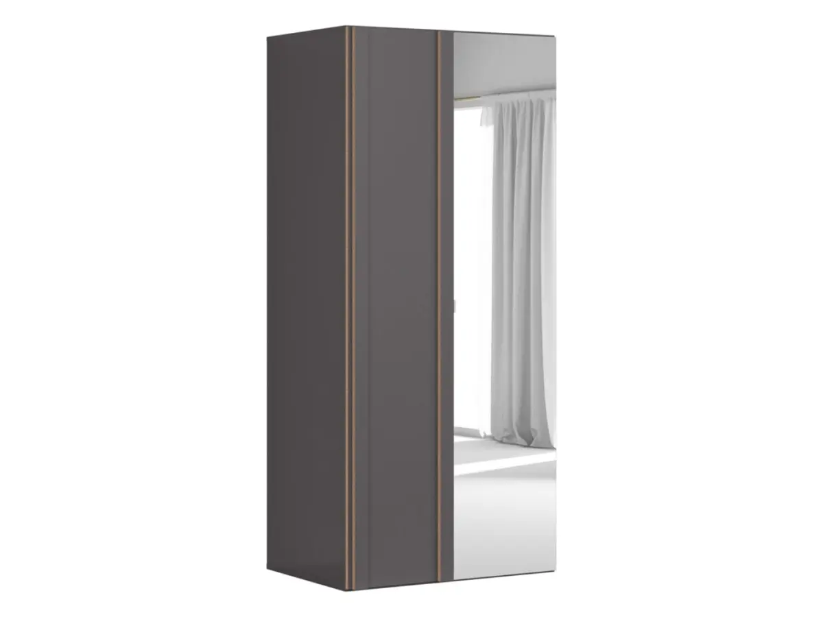 El acabado en color wolframio le otorga al armario Flex un carácter moderno y sofisticado. Sus puertas con espejo no solo aportan elegancia, sino que amplían visualmente el espacio, siendo ideal para dormitorios o pasillos donde cada centímetro cuenta.