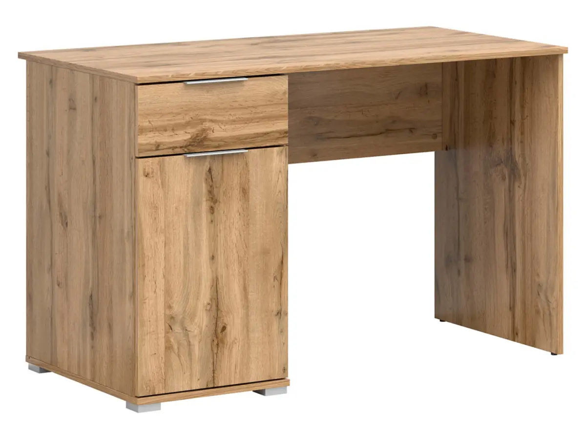 Su tablero de 120 cm de ancho ofrece espacio para todo lo necesario en el día a día: el portátil, cuadernos, organizadores y lámpara. Al terminar la jornada, los apuntes y documentos se pueden guardar en el amplio armario, manteniendo los accesorios a mano en el cajón.