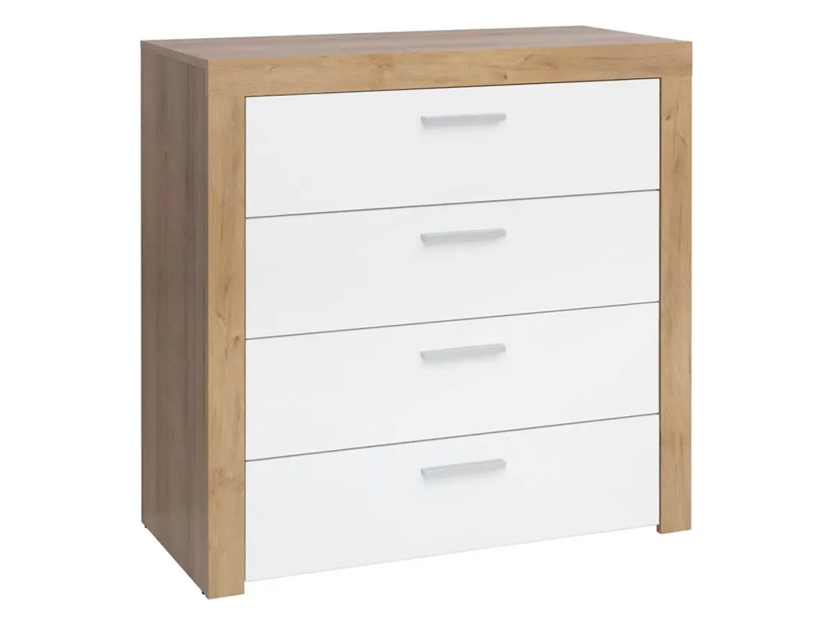 Cómoda Balder 90 cm con 4 cajones roble riviera/blanco brillo