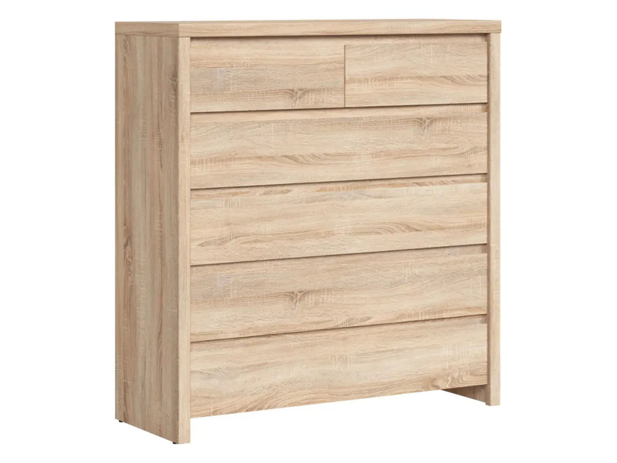 Seis amplios cajones ideales para guardar ropa interior, juguetes, documentos o lo que necesites tener a mano pero fuera de la vista. Además, cuenta con una superficie superior despejada para colocar una lámpara, un jarrón o tus fotos favoritas.