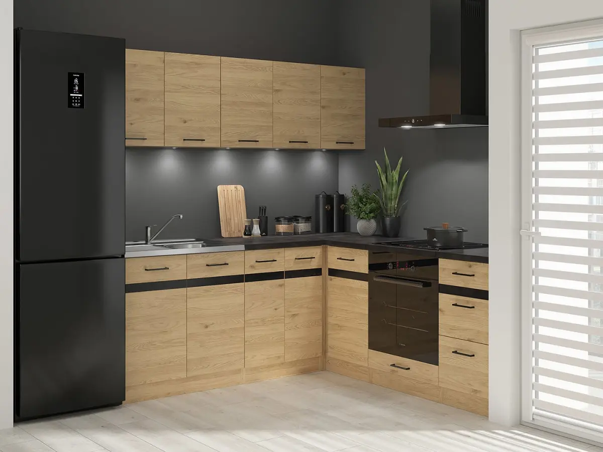 Conjunto de cocina rinconera Junona Line 200x200 izquierdo roble bernstein con encimera