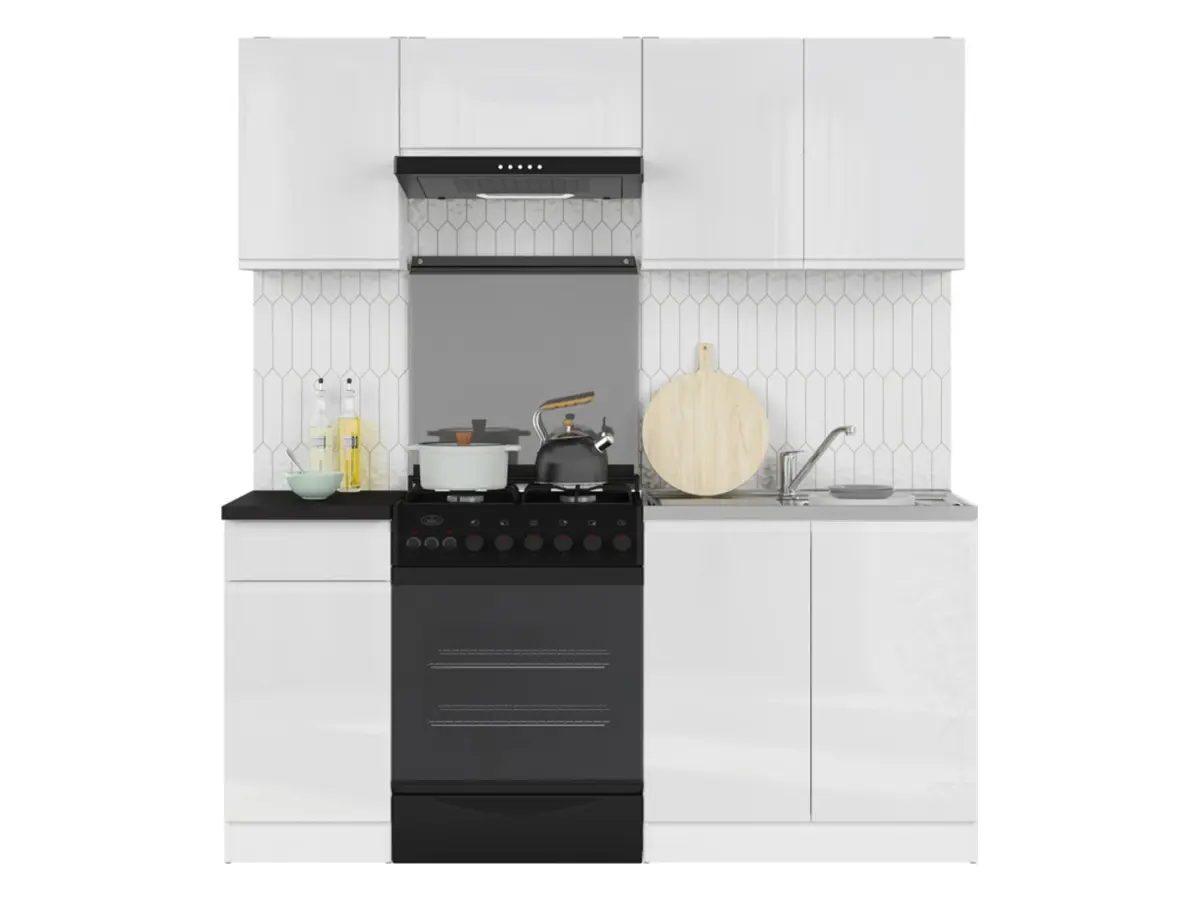 Conjunto de cocina Junona Line 180 cm blanco brillo sin encimera
