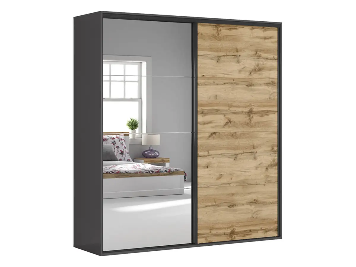 Armario de puertas correderas Flex 220 cm con espejo grafito/roble wotan