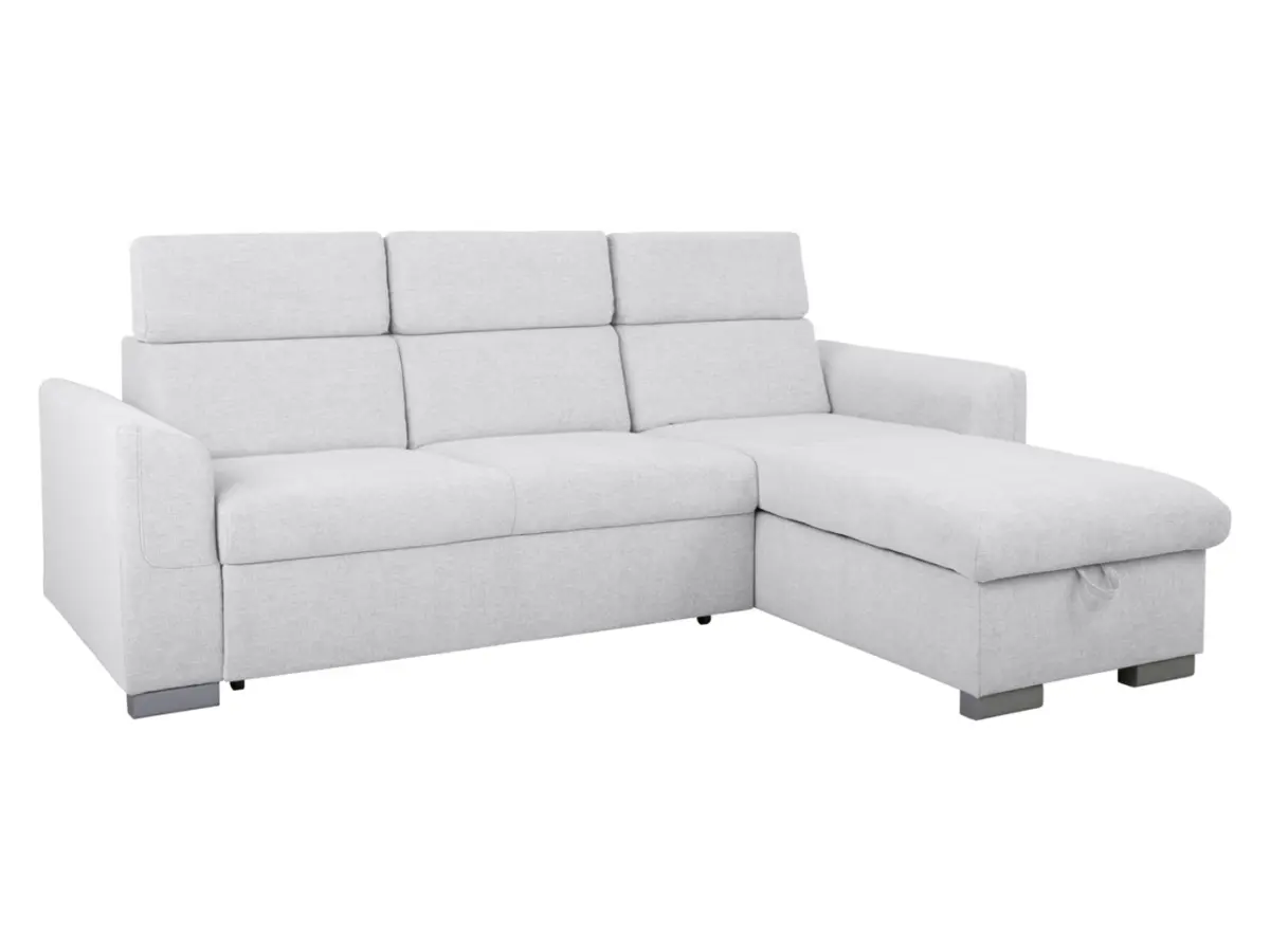 Sofá rinconera universal Evia con función de cama, arcón y reposacabezas ajustables gris claro