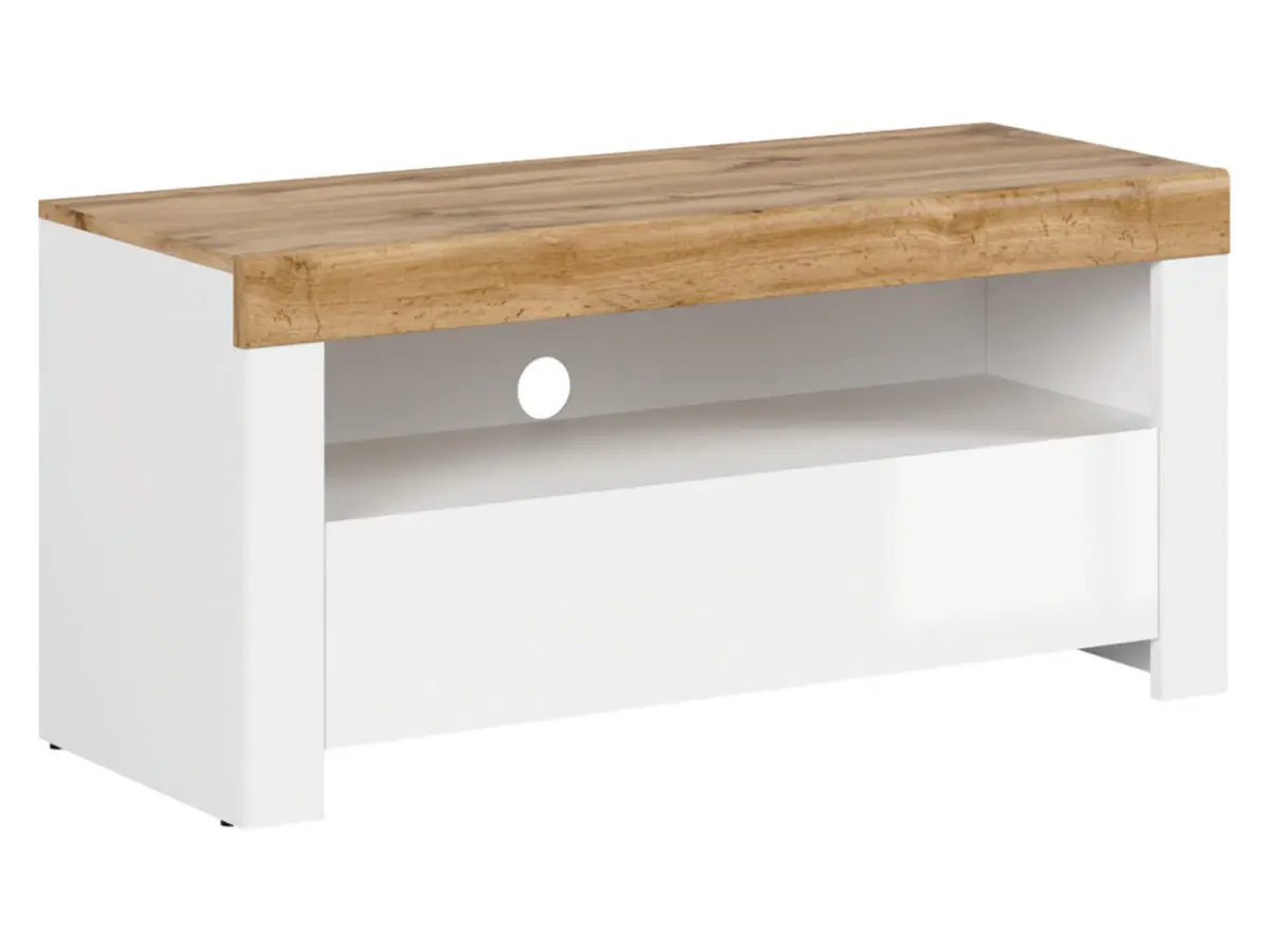 Mueble RTV Holten 106 cm con cajón y estante blanco brillo