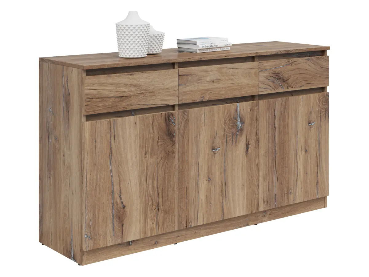 Cómoda Saturn 135 cm con 3 puertas y 3 cajones roble flagstaff oscuro