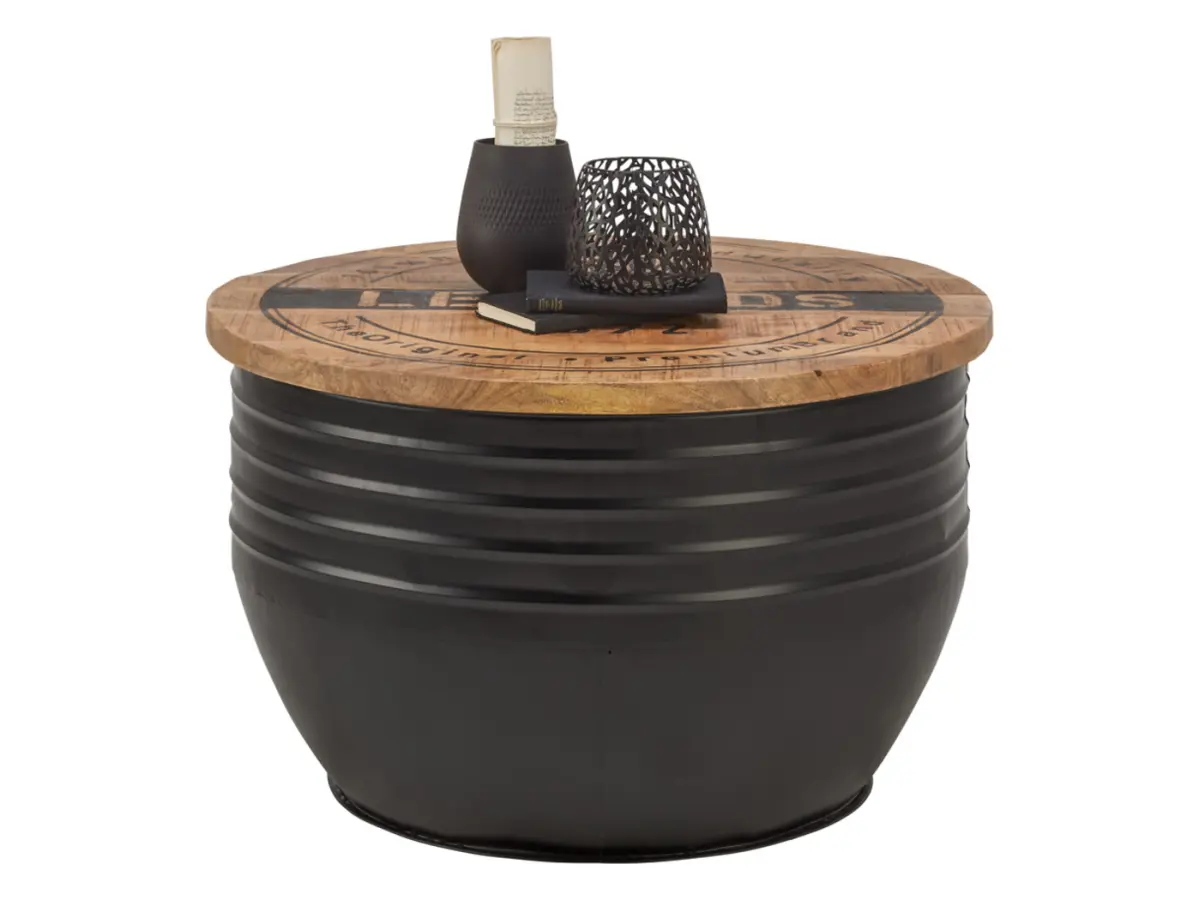 Mesa redonda Lea madera mango/negro
