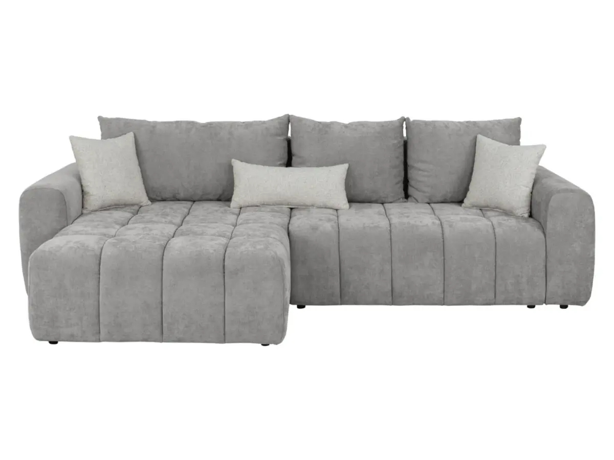 Sofá rinconera izquierdo Chill_Me convertible con arcón de chenilla gris
