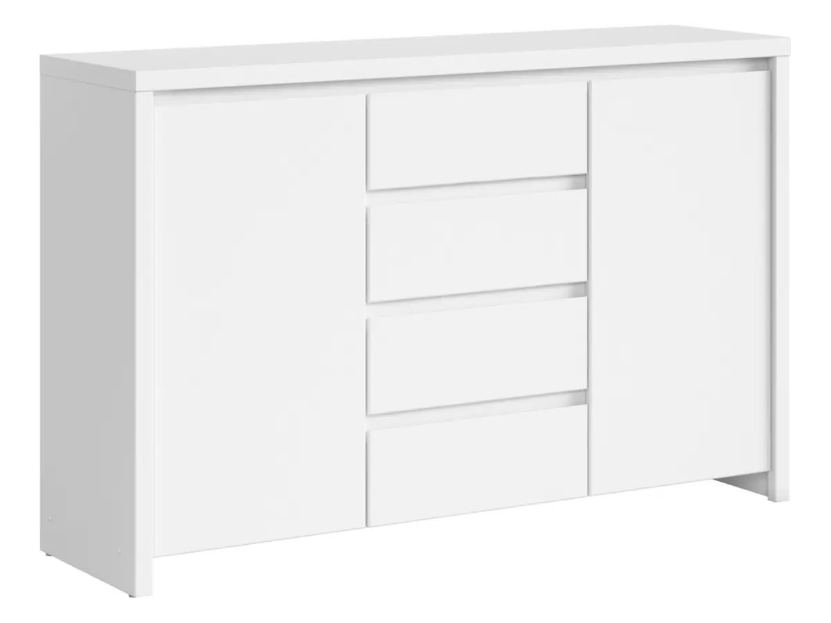 En su interior, cuatro amplias baldas y cajones ofrecen espacio de sobra para mantener el orden sin esfuerzo. La apertura de las puertas es cómoda e intuitiva gracias al sistema sin tiradores.