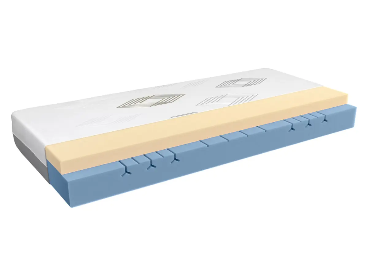El colchón Santo combina dos capas de espuma de alto rendimiento: espuma perfilada de alta elasticidad —que acompaña cada movimiento— y espuma viscoelástica con memoria de forma, que reacciona al calor corporal y elimina los puntos de presión. El resultado es un soporte firme que se adapta a ti, no al revés.
