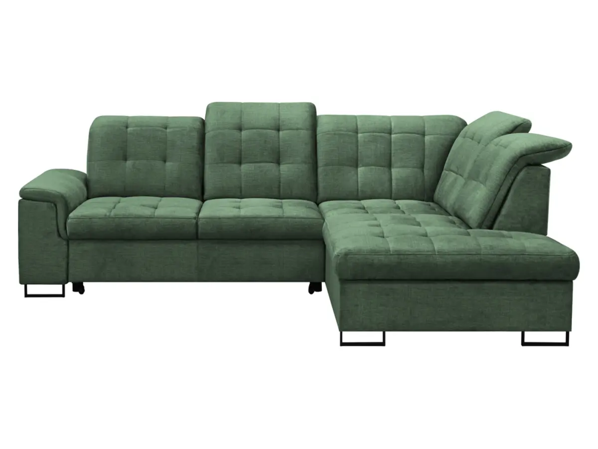 Sofá de esquina derecho Aragon convertible con reposacabezas y asiento ajustable verde