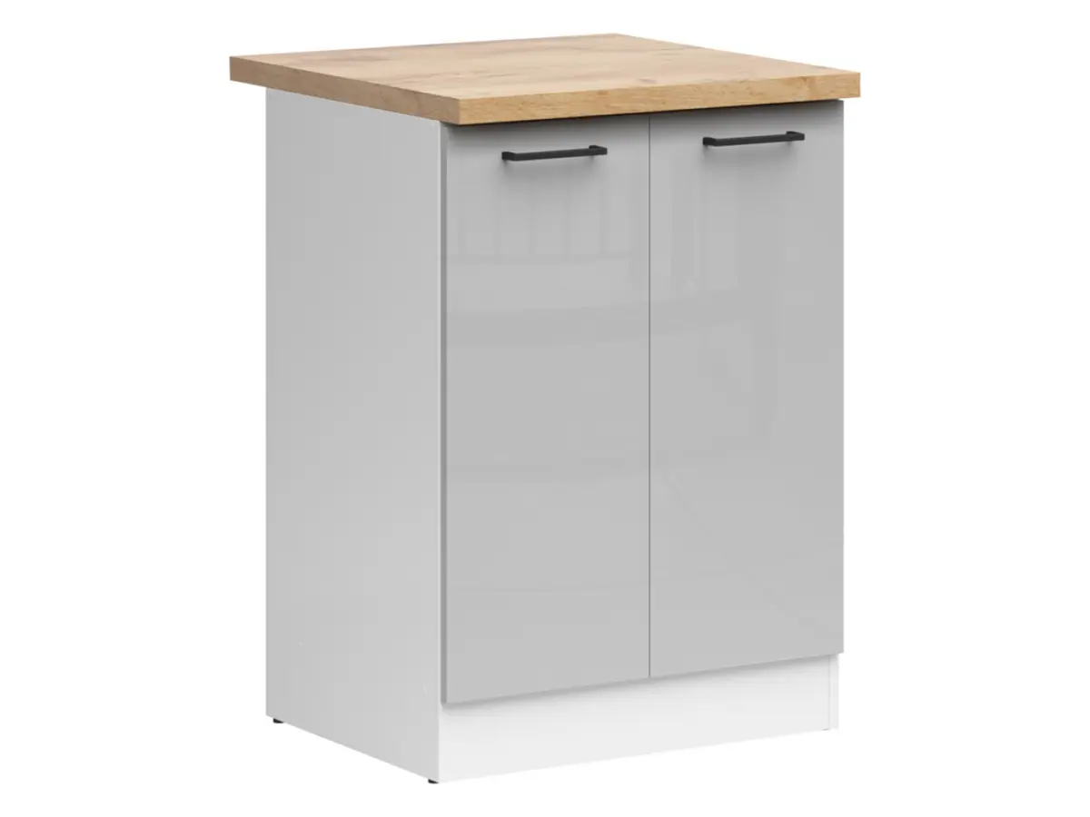 Armario de cocina inferior Junona Line 60 cm de dos puertas gris claro brillo con encimera