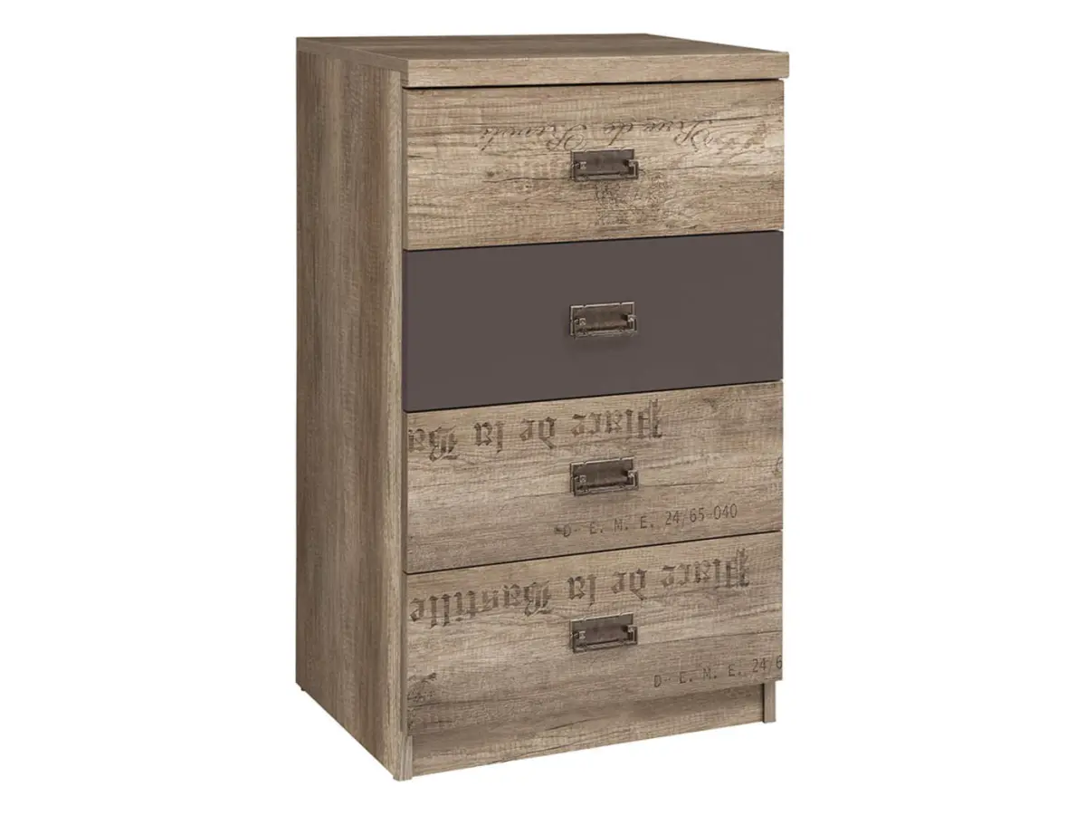 Cómoda Malcolm 50 cm con 4 cajones roble canyon monument/gris wolfram/roble canyon monument estampado