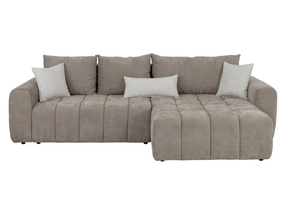 Sofá rinconera derecho Chill_Me convertible con arcón de chenilla marrón