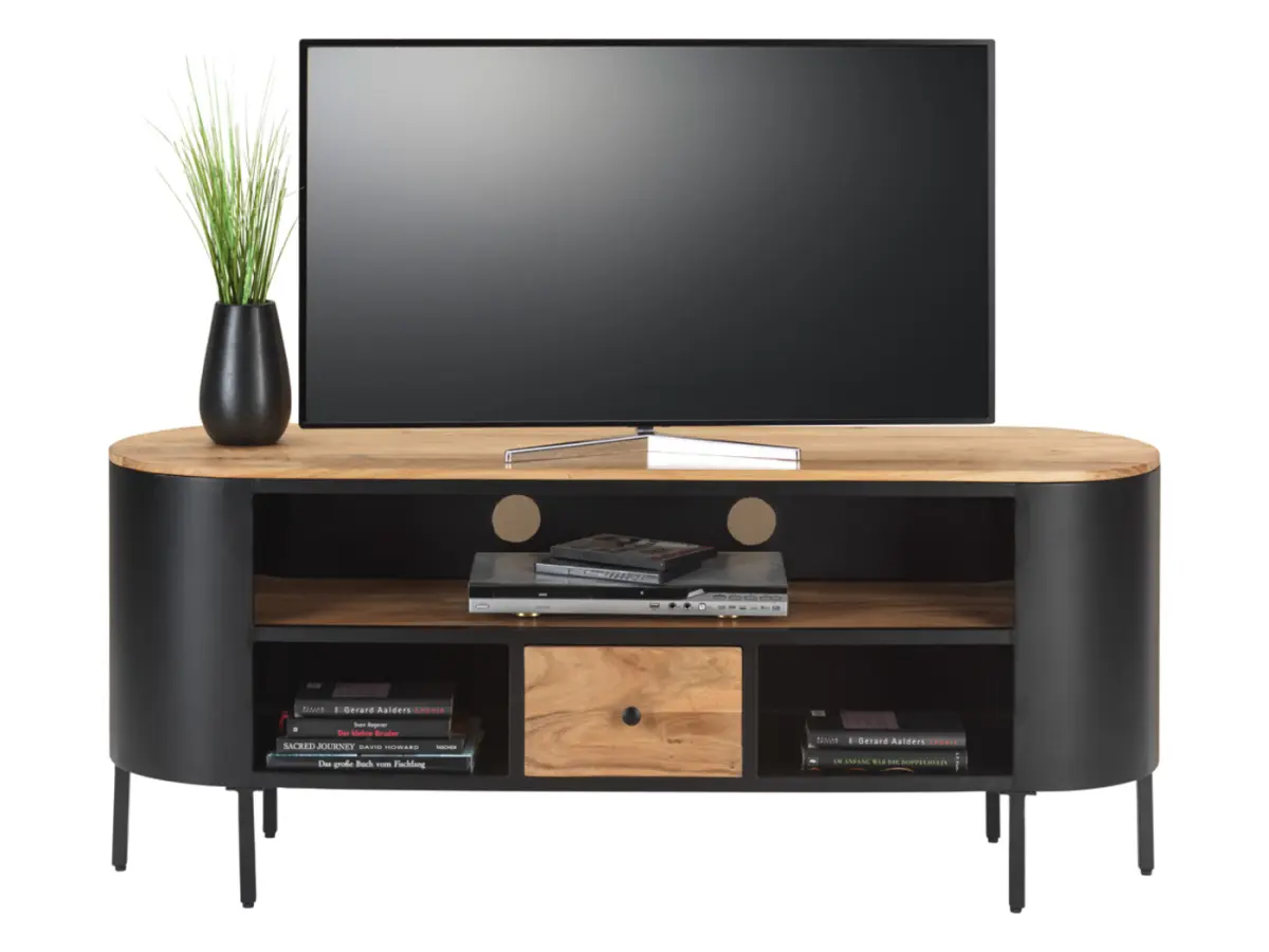Mueble TV Ravin 145 cm con cajón acacia/negro